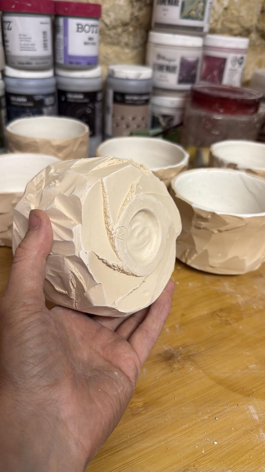 Le kurinuki, cette technique japonaise qui consiste à creuser la terre, devient ici un "kurinuki au féminin" : plus instinctif, plus sensoriel, plus libre. Chaque création explore la céramique en grès comme on explore une part de soi : des reliefs, des creux, des lignes imprévues.