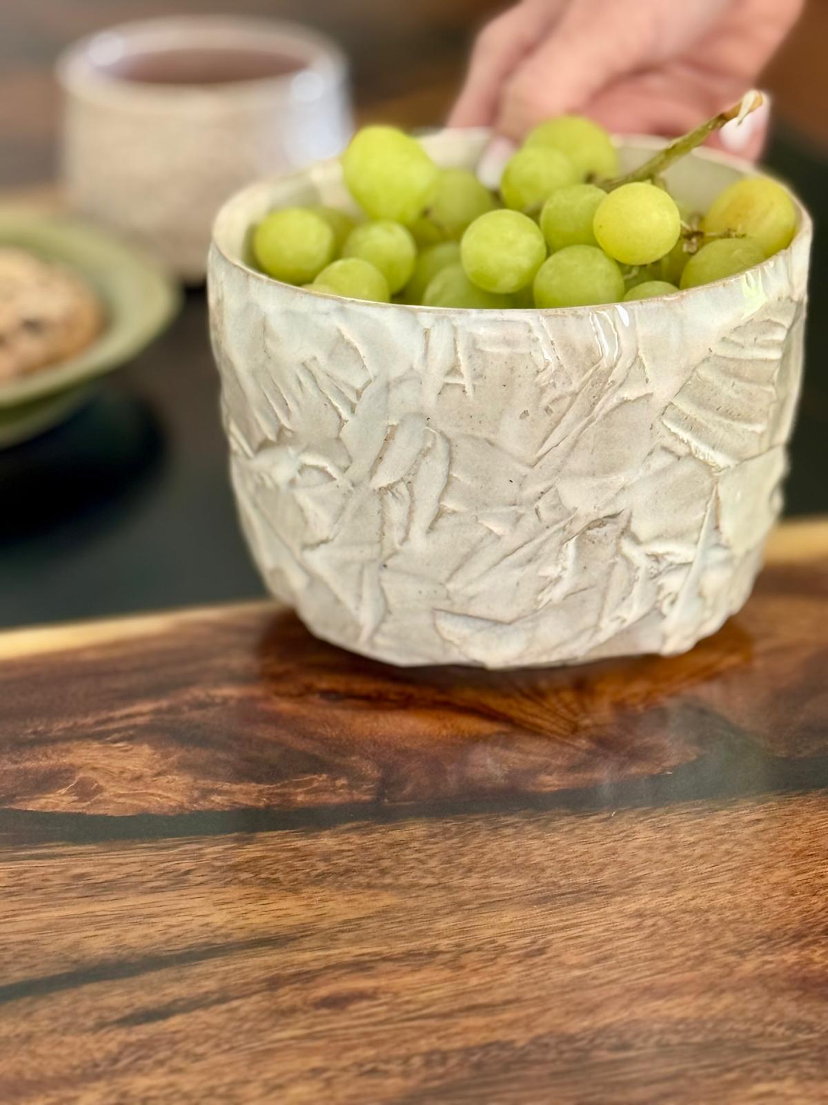 Plus ouvert que les formats classiques, ce pot se prête à de multiples usages : accueillir une plante, mettre en valeur des fruits ou une salade, ou simplement exister comme objet décoratif.