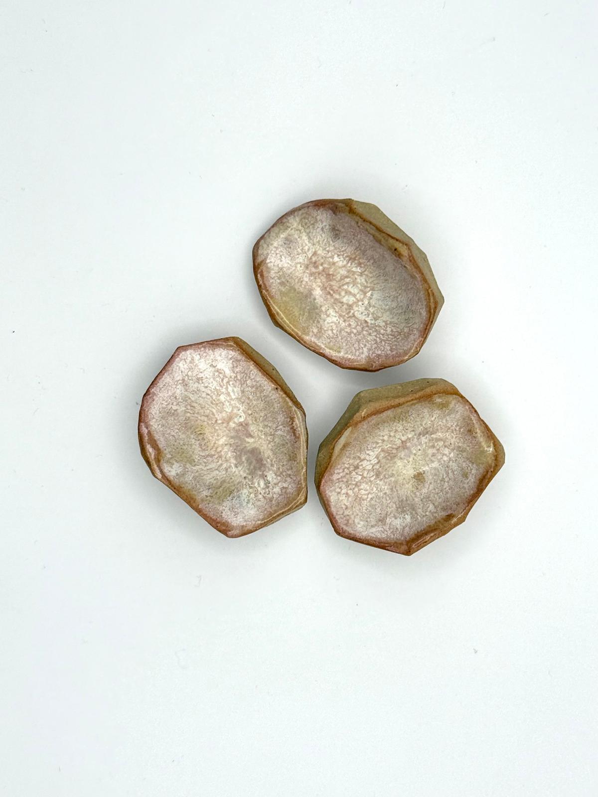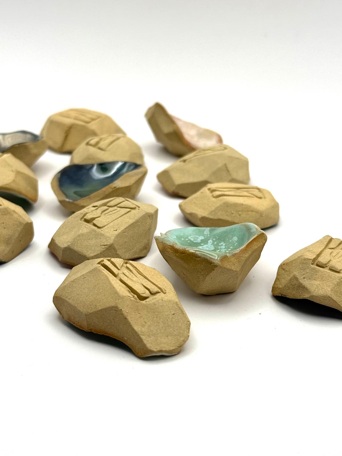 Ces pierres d'apaisement, que j'appelle ici pierre de reconnexion sont façonnées à la main selon la technique du kurinuki avec du grès.